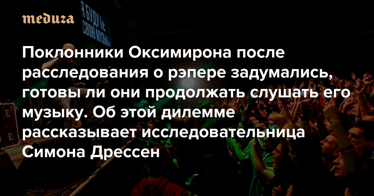 В новом сезоне подкаста «Дочь разбойника» журналистки Насти Красильниковой три героини обвинили рэпера Оксимирона (Мирона Федорова) в груминге и сексуализированном насилии. Расследование вызвало широкую общественную дискуссию, в том числе обсуждение творчества Оксимирона. Пока одни поддерживают героинь подкаста или сомневаются в их искренности, другие пытаются понять, можно ли продолжать слушать песни рэпера — и как отделить его творчество от обвинений в насилии. И почему часть поклонников Оксимирона так активно критикует журналисток и девушек, рассказавших о груминге, вместо того, чтобы потребовать от исполнителя объяснений? Об этом «Медуза» поговорила с доцентом Роттердамского университета Эразма Симоной Дрессен, которая много лет изучает фанатские сообщества — и то, как они реагируют на обвинения в насилии против своих любимых артистов.