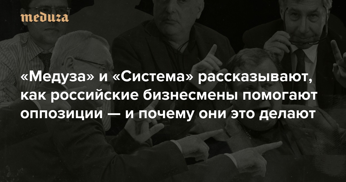 «Партизаны должны работать с кем угодно» «Медуза» и «Система» рассказывают, как российские бизнесмены помогают оппозиции — и почему они это делают