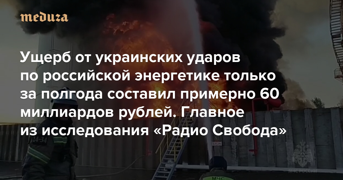 Ущерб от украинских ударов по российской энергетике только за полгода составил примерно 60 миллиардов рублей Главное из исследования «Радио Свобода»
