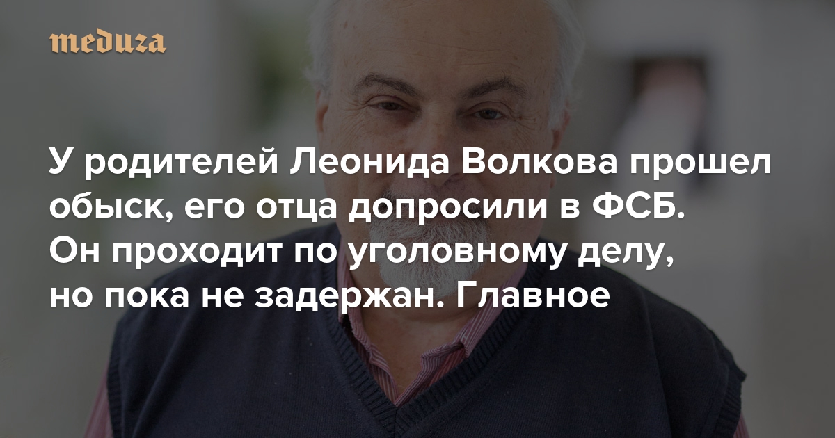 У родителей Леонида Волкова прошел обыск, его отца допросили в ФСБ. Он проходит по уголовному делу, но пока не задержан. Главное