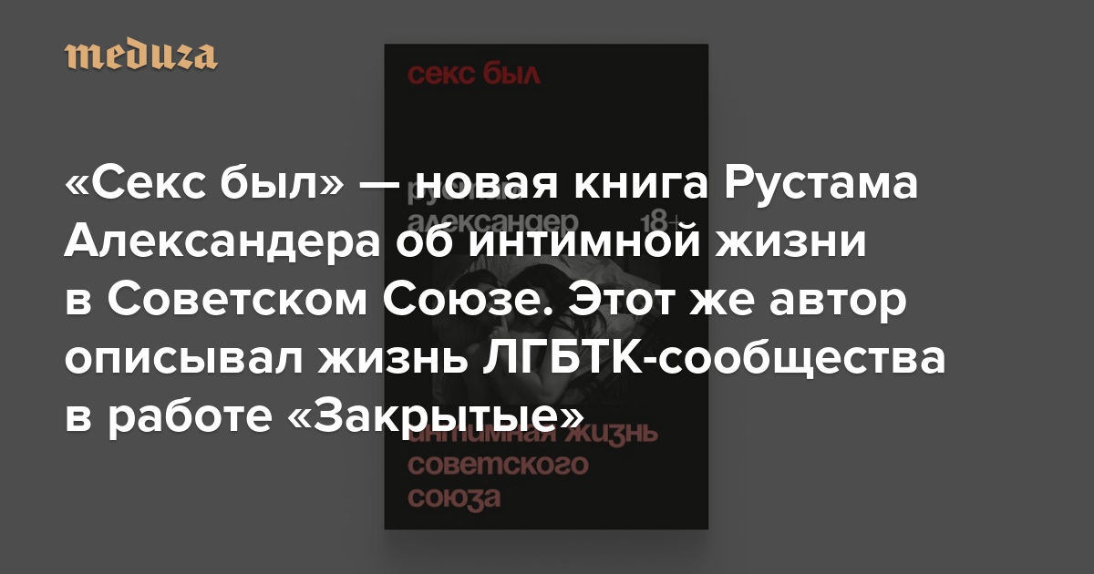 «Секс был» — новая книга Рустама Александера об интимной жизни в Советском Союзе Этот же автор описывал жизнь ЛГБТК-сообщества в работе «Закрытые». Теперь он расширяет свое исследование