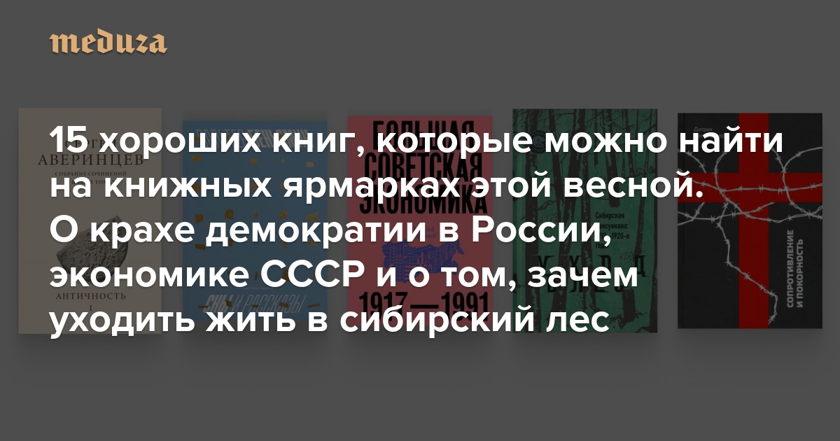 15 хороших книг, которые можно найти на книжных ярмарках этой весной О крахе демократии в России, экономике СССР и о том, зачем уходить жить в сибирский лес