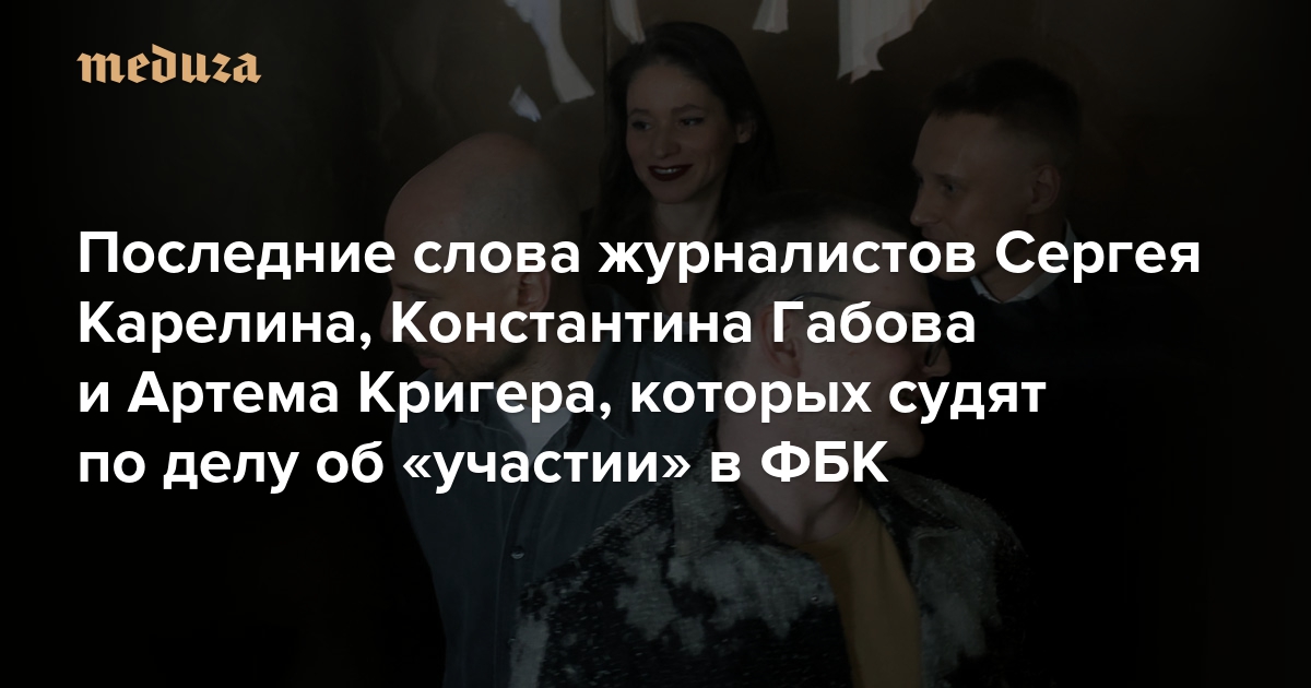 «Быть честным и профессиональным журналистом, а не пропагандистом позорным — это уголовное преступление и экстремизм в путинской России!» Последние слова журналистов Сергея Карелина, Константина Габова и Артема Кригера, которых судят по делу об «участии» в ФБК