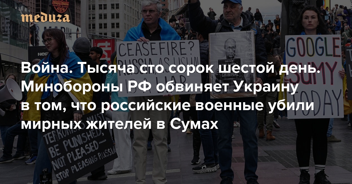 Война Тысяча сто сорок шестой день. Минобороны РФ обвиняет Украину в том, что российские военные убили мирных жителей в Сумах