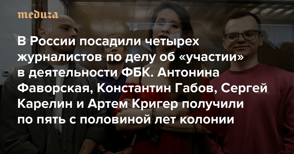Нагатинский районный суд Москвы приговорил журналистов Антонину Фаворскую, Сергея Карелина, Константина Габова и Артема Кригера к пяти с половиной годам лишения свободы по уголовному делу об участии в деятельности «экстремистской организации» (часть 2 статьи 282.1 УК), которой в России объявлен Фонд борьбы с коррупцией. По версии следствия, журналисты якобы участвовали в создании материалов для ютьюб-каналов команды Алексея Навального. Никто из них не признавал вину в сотрудничестве с ФБК. Подробности обвинения неизвестны, так как судебные заседания проходили в закрытом режиме. «Медуза» рассказывает о журналистах, которые получили тюремные сроки за свою профессиональную деятельность.