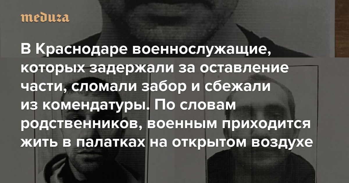 В Краснодаре военнослужащие, которых задержали за оставление части, сломали забор и сбежали из комендатуры По словам родственников, военным месяцами приходится жить в палатках на открытом воздухе