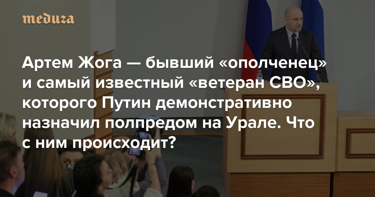 Артем Жога — бывший «ополченец» из ДНР и самый известный «ветеран СВО», которого Путин демонстративно назначил своим полпредом на Урале «Медуза» рассказывает, почему Жога так и не смог стать полноценным чиновником
