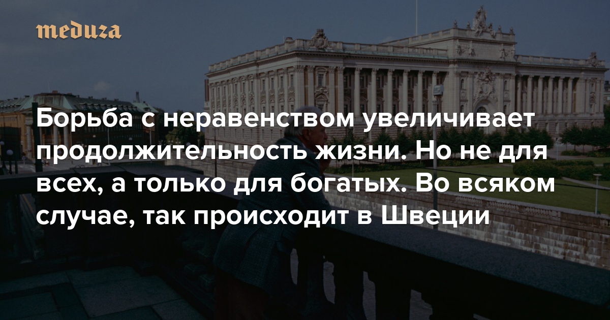 Проблема неравенства в доходах — одно из ключевых направлений исследований в современных социальных, экономических и политических науках. За последние десятилетия количество научных публикаций на эту тему увеличилось в 10 раз. В недавней работе группа шведских ученых пришла к выводу, что в их стране сокращение экономического неравенства между разными группами населения не привело к увеличению продолжительности жизни менее обеспеченных людей. Скорее всего, причина — в факторе, который исследователям так и не удалось обнаружить. «Медуза» пересказывает работу, которую в апреле опубликовал журнал Американской академии наук (PNAS).