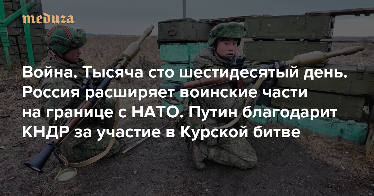 Война Тысяча сто шестидесятый день. Россия расширяет воинские части на границе с НАТО. Путин благодарит КНДР за участие в битве за Курскую область