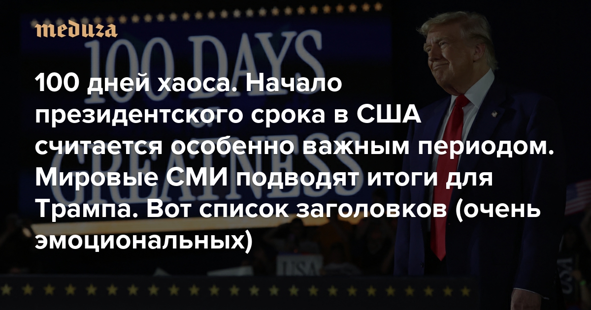 100 дней хаоса Начало президентского срока в США считается особенно важным периодом. Мировые СМИ подводят итоги для Трампа. Вот список заголовков (очень эмоциональных)