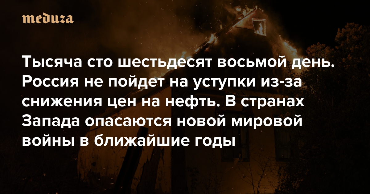 Война Тысяча сто шестьдесят восьмой день. Россия не пойдет на уступки из-за снижения цен на нефть. В странах Запада опасаются новой мировой войны в ближайшие годы