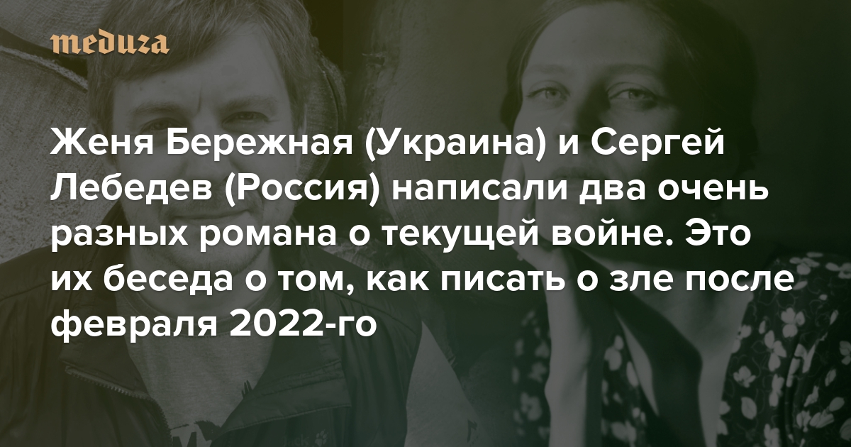 В 2023 году писатели Сергей Лебедев из России и Женя Бережная из Украины закончили работу каждый над своей рукописью. Оба романа вышли в издательстве «Медузы», оба так или иначе связаны с российско-украинской войной. «Белая дама» Лебедева — о событиях 2014 года в Донбассе, повлекших за собой страшные для всего мира последствия, «(Не) о войне» Бережной — о личном опыте переживания войны и беженства. В апреле 2025-го писатели встретились на ярмарке русскоязычной литературы «Берлин Бебельплац» и поговорили о том, каково это — писать художественное произведение о войне, которая все еще не закончена, и как сказочные образы и символы помогают описывать реальное зло. Мы расшифровали этот разговор и публикуем его с небольшими сокращениями.