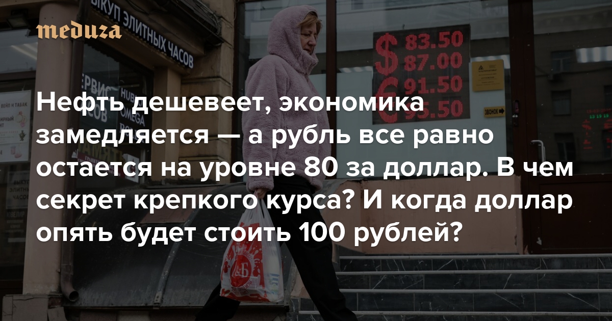 Нефть дешевеет, экономика замедляется — а рубль все равно остается на уровне 80 за доллар. В чем секрет крепкого курса? И когда доллар опять будет стоить 100 рублей?