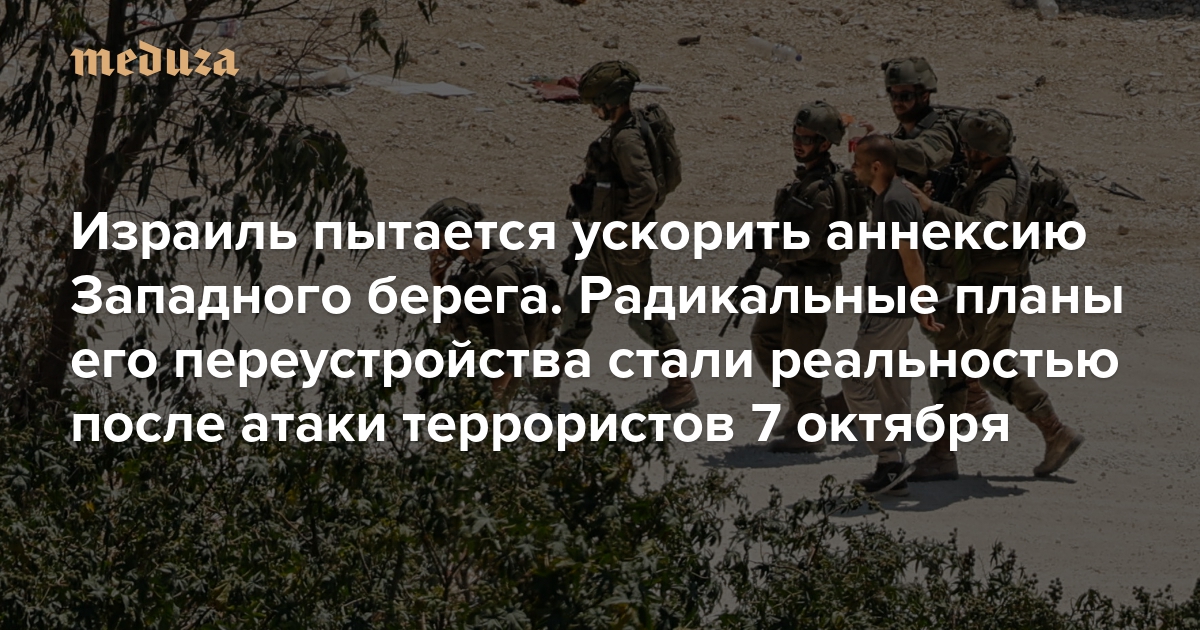 Израиль пытается ускорить аннексию Западного берега реки Иордан Радикальные планы переустройства этой территории стали реальностью после нападения террористов 7 октября