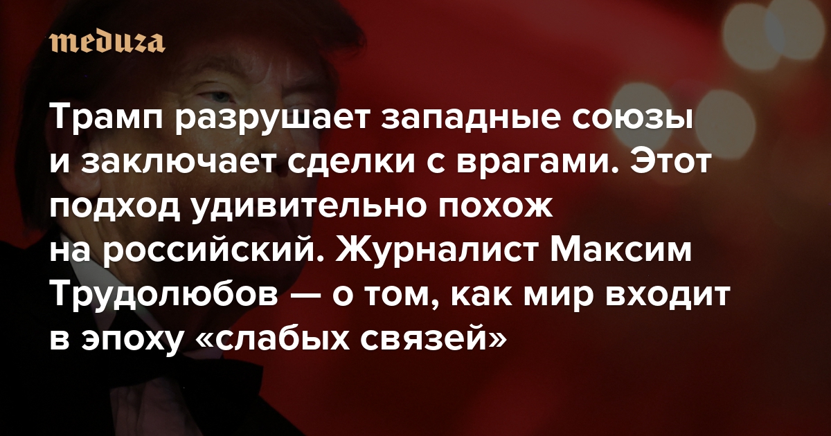 Трамп разрушает западные союзы и заключает сделки с врагами. Этот подход удивительно похож на российский Журналист Максим Трудолюбов — о том, как мир входит в эпоху «слабых связей»