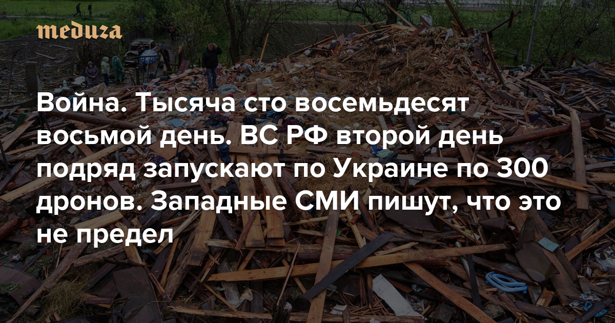 Война Тысяча сто восемьдесят восьмой день. ВС РФ второй день подряд запускают по Украине по 300 дронов. Западные СМИ пишут, что это не предел