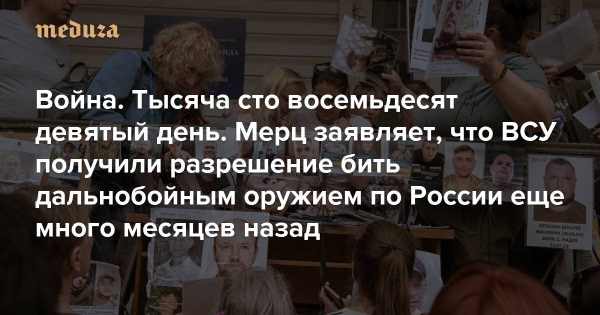 Война Тысяча сто восемьдесят девятый день. Мерц заявляет, что ВСУ получили разрешение бить дальнобойным оружием по России еще много месяцев назад