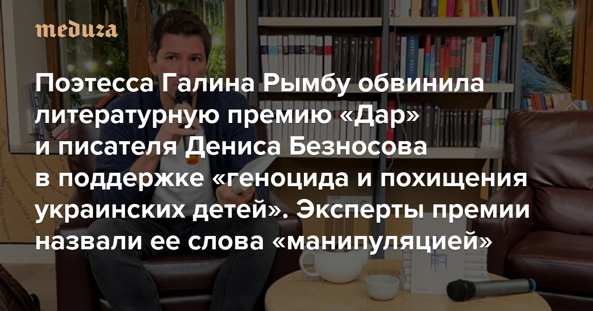 Поэтесса Галина Рымбу обвинила независимую литературную премию «Дар» и писателя Дениса Безносова в поддержке «геноцида и похищения украинских детей» Эксперты премии назвали ее слова «манипуляцией и хайпожорством»