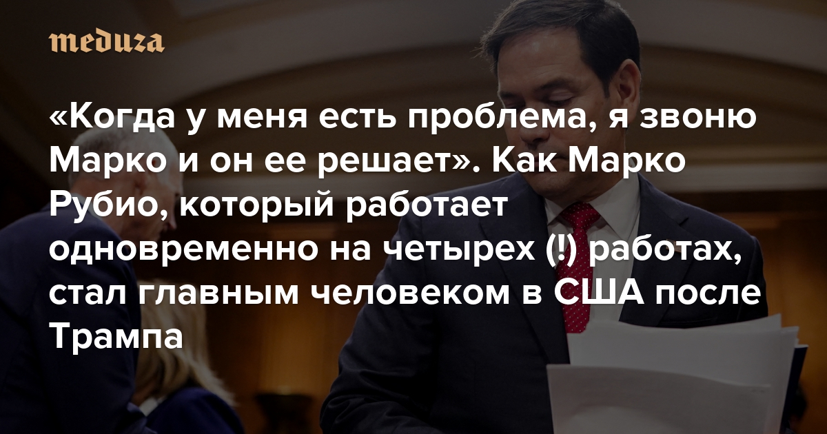 «Когда у меня есть проблема, я звоню Марко и он ее решает» Как Марко Рубио, который работает одновременно на четырех (!) работах, стал главным человеком в США после Трампа