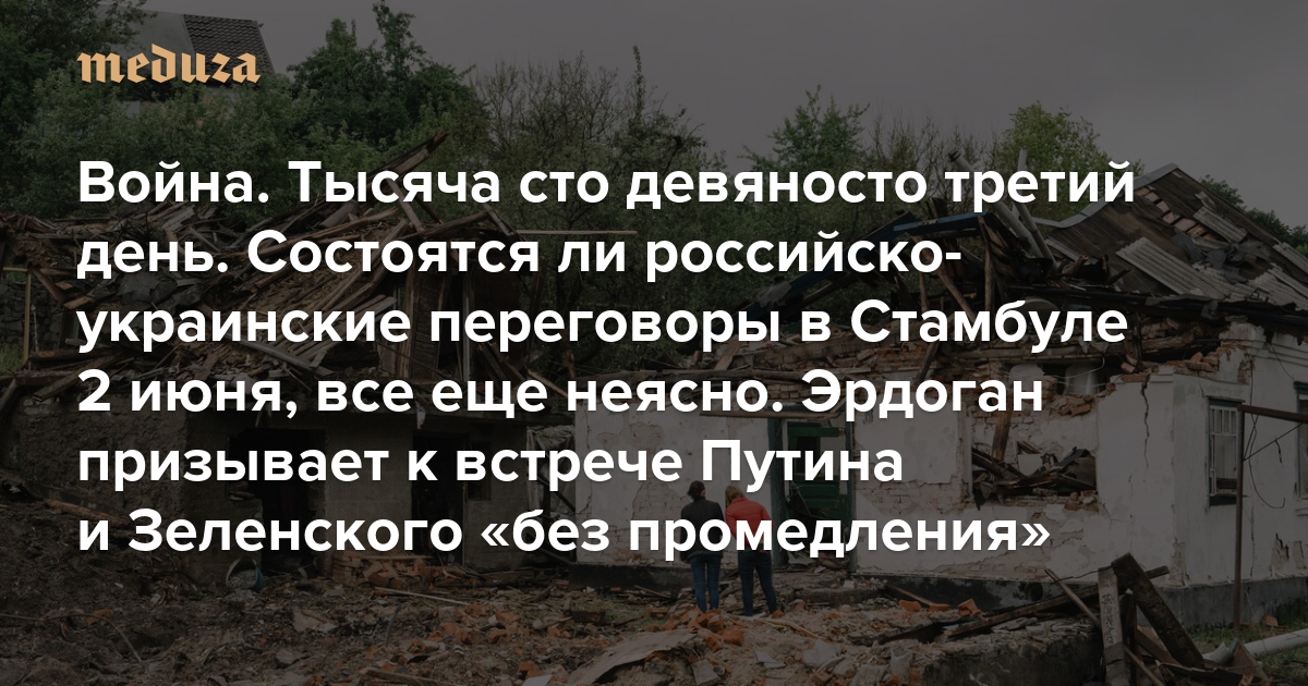 Война Тысяча сто девяносто третий день. Состоятся ли российско-украинские переговоры в Стамбуле 2 июня, все еще неясно. Эрдоган призывает к встрече Путина и Зеленского «без промедления»