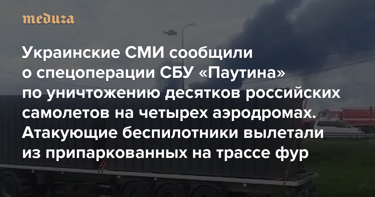 Украинские СМИ сообщили о спецоперации СБУ «Паутина» по уничтожению десятков российских самолетов на четырех аэродромах Атакующие беспилотники вылетали из припаркованных на трассе грузовиков