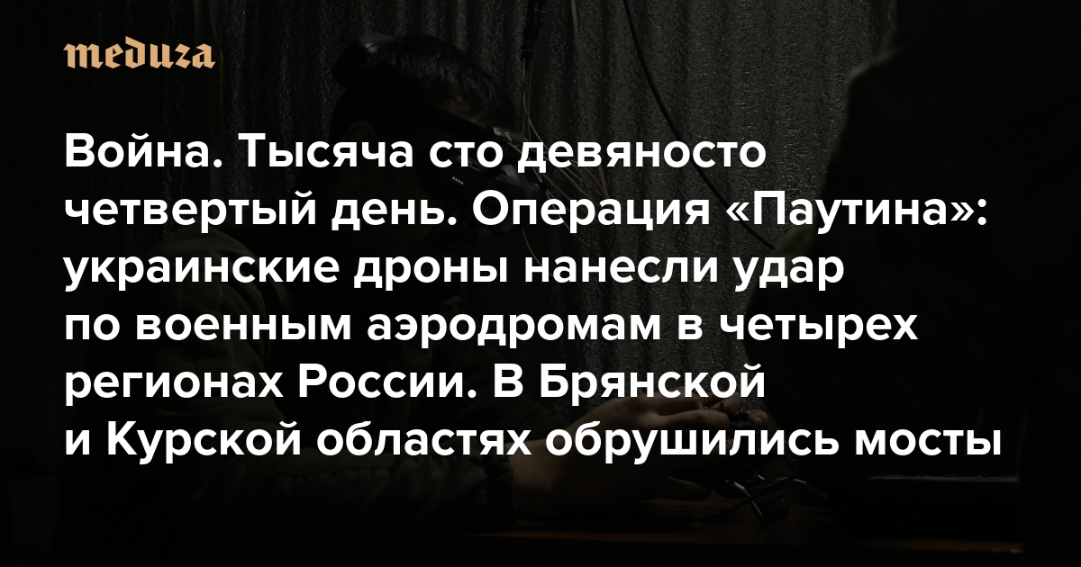Война Тысяча сто девяносто четвертый день. Операция «Паутина»: украинские дроны нанесли удар по военным аэродромам в четырех регионах России. В Брянской и Курской областях обрушились мосты