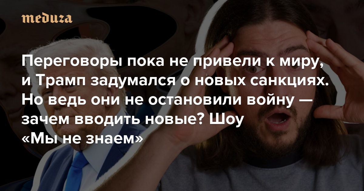 Переговоры пока не привели к миру, и Трамп задумался о новых санкциях. Но ведь они не остановили войну — зачем вводить новые? Или все-таки можно разрушить экономику России санкциями? Новый эпизод ютьюб-шоу «Мы не знаем»