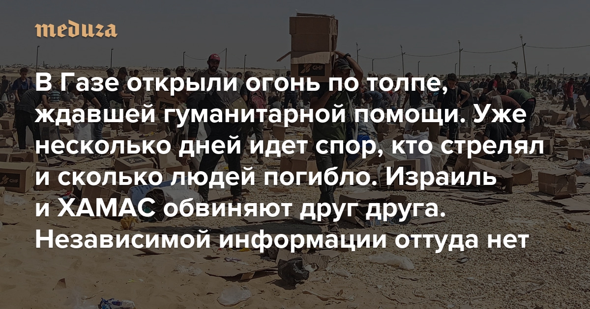 В секторе Газа открыли огонь по толпе, ждавшей гуманитарной помощи. Уже несколько дней идет спор, кто стрелял и сколько людей погибло Израиль и ХАМАС обвиняют друг друга. Независимой информации оттуда нет