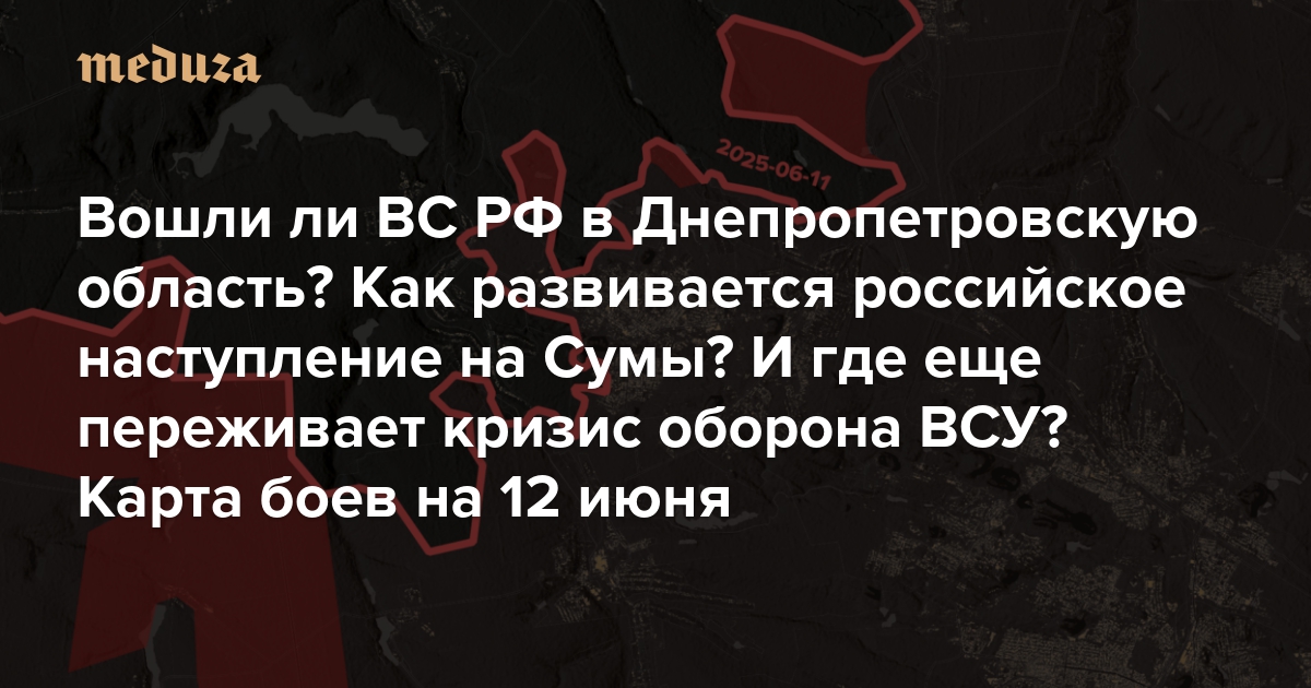Вошли ли ВС РФ в Днепропетровскую область? Как развивается российское наступление на Сумы? И где еще переживает кризис оборона ВСУ? Карта боев на 12 июня