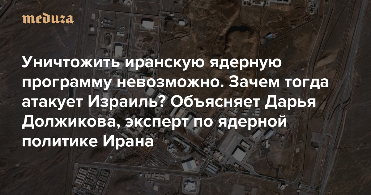 Уничтожить иранскую ядерную программу невозможно. Зачем тогда Израиль атакует? И почему именно сейчас? Объясняет Дарья Должикова, эксперт по ядерной политике Ирана