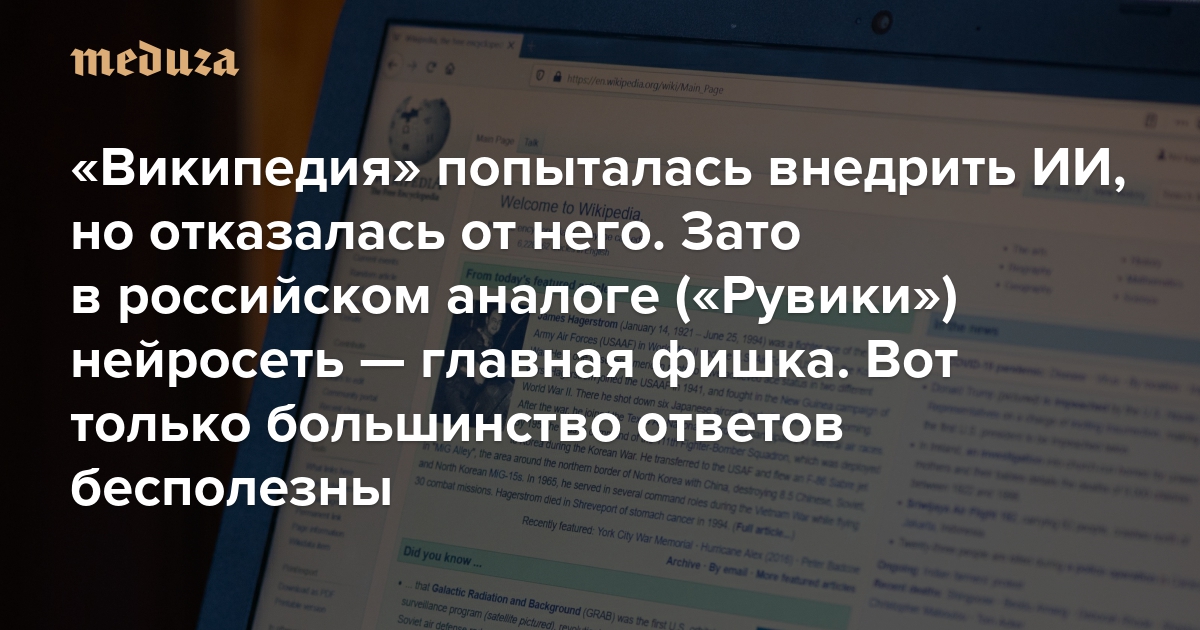 «Википедия» попыталась внедрить ИИ, но отказалась от него на следующий день Зато в российском аналоге («Рувики») нейросеть — главная фишка. Вот только большинство ее ответов бесполезны