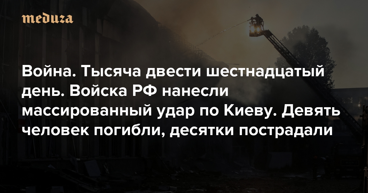 Война Тысяча двести шестнадцатый день. Войска РФ нанесли массированный удар по Киеву. Девять человек погибли, десятки пострадали
