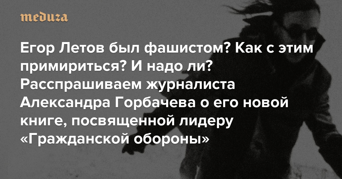 В издательстве «Выргород» вышла книга журналиста Александра Горбачева «Он увидел солнце. Егор Летов и его время». В 2023 году автор выпустил первые эпизоды одноименного подкаста, посвященного лидеру «Гражданской обороны», но книга, по его словам, стала более обширным исследованием — не только самого героя, но и его эпохи. «Медуза» поговорила с Горбачевым о «грязи» в музыке Летова, а также о том, почему правая риторика поэта и музыканта не мешает журналисту любить его песни.