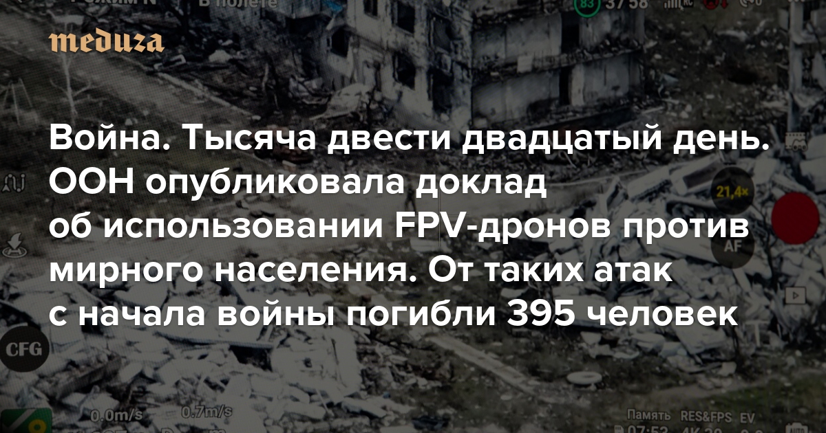Война Тысяча двести двадцатый день. ООН опубликовала доклад об использовании FPV-дронов против мирного населения. От таких атак с начала войны погибли 395 человек