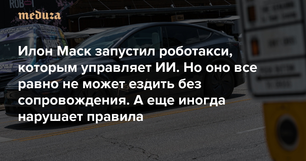 22 июня 2025 года компания Tesla запустила в Техасе беспилотное роботакси. Речь идет всего о двух десятках электромобилей Model Y, которые выполняют заказы в небольшом районе Остина. В каждой машине обязательно присутствует сотрудник Tesla, который следит за безопасностью. Для управления роботакси используется система, состоящая из камер и искусственного интеллекта, которая анализирует ситуацию на дороге. «Медуза» рассказывает, как прошел запуск нового сервиса Tesla — и с какими проблемами может столкнуться компания в будущем.