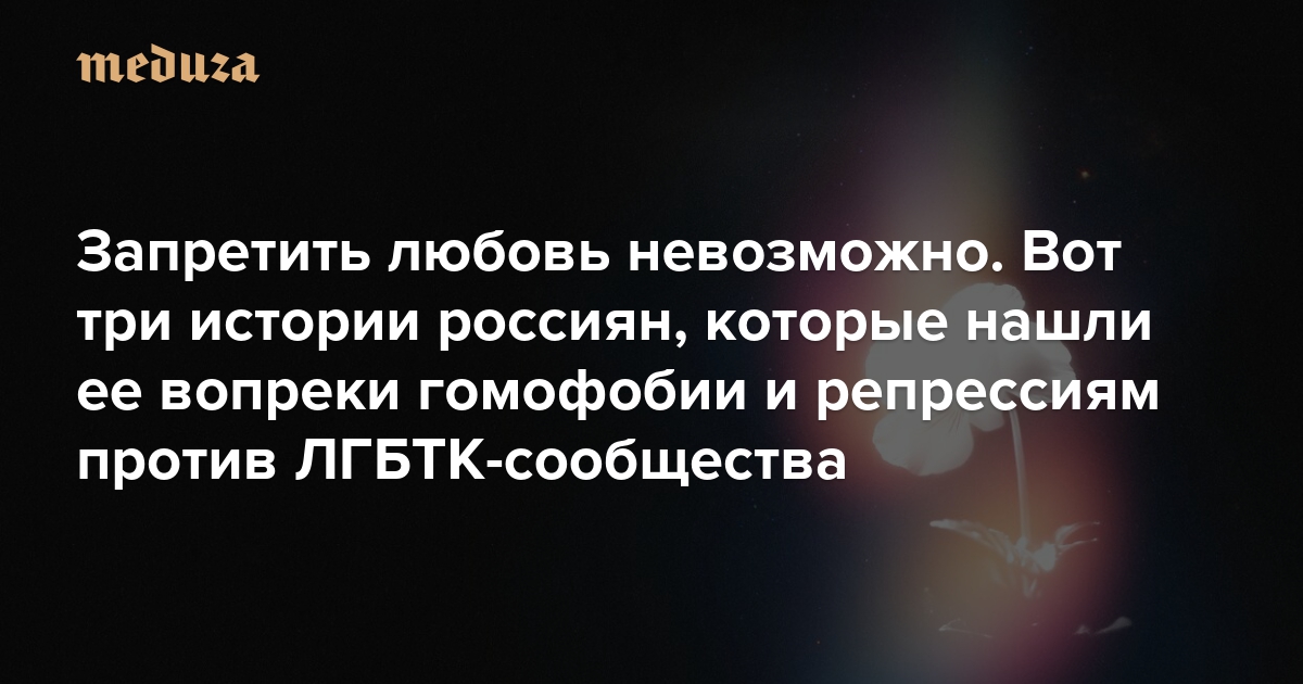 Пока по всему миру (но все еще в основном на Западе) отмечают месяц гордости, в России ЛГБТК-люди не могут даже безопасно знакомиться друг с другом: российские власти уже не первый год усиливают репрессии против квир-людей. «Медуза» нашла тех, кто, несмотря на это, смог найти любовь. Вот три истории из России, которые, как мы надеемся, смогут поддержать многих из вас.