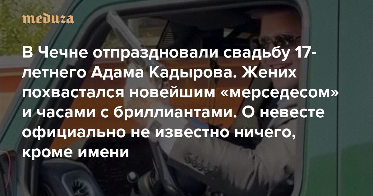 В Чечне отпраздновали свадьбу 17-летнего Адама Кадырова. Именно его считают потенциальным преемником отца Жених похвастался новейшим «мерседесом» и часами с бриллиантами. О невесте официально не известно ничего, кроме имени