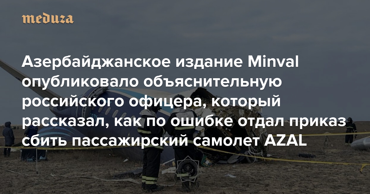 1 июля азербайджанское издание Minval опубликовало, как утверждается, объяснительную российского военнослужащего, который в декабре 2024 года по ошибке отдал приказ сбить самолет «Азербайджанских авиалиний», летевший из Баку в Грозный. В результате погибли 38 человек.