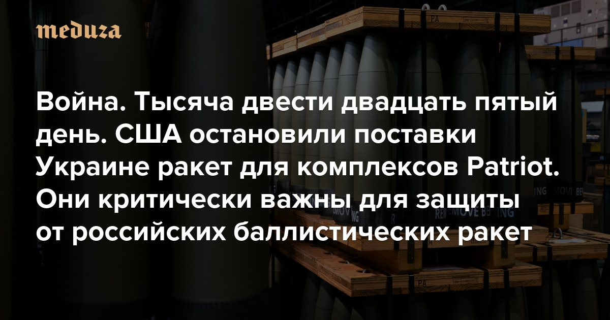 Война Тысяча двести двадцать пятый день. США остановили поставки Украине ракет для комплексов Patriot. Они критически важны для защиты от российских баллистических ракет