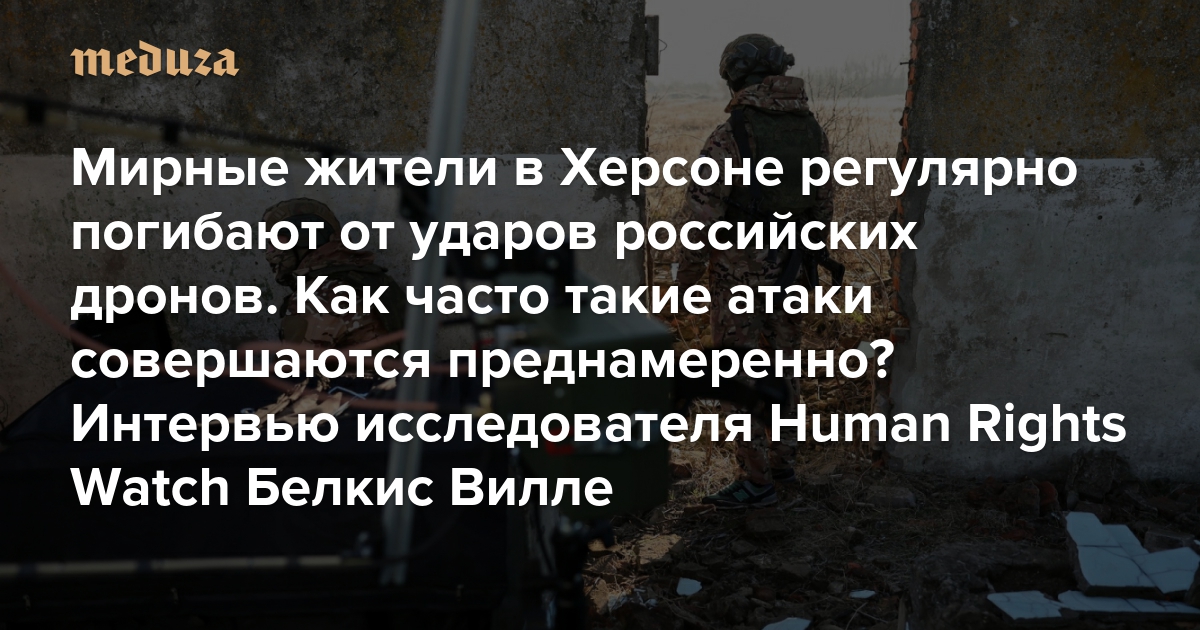 О том, как дроны изменили жизнь в Херсоне и почему эти атаки считаются военным преступлением, редакция англоязычной «Медузы» поговорила с экспертом HRW Белкис Вилле. Публикуем перевод их разговора.