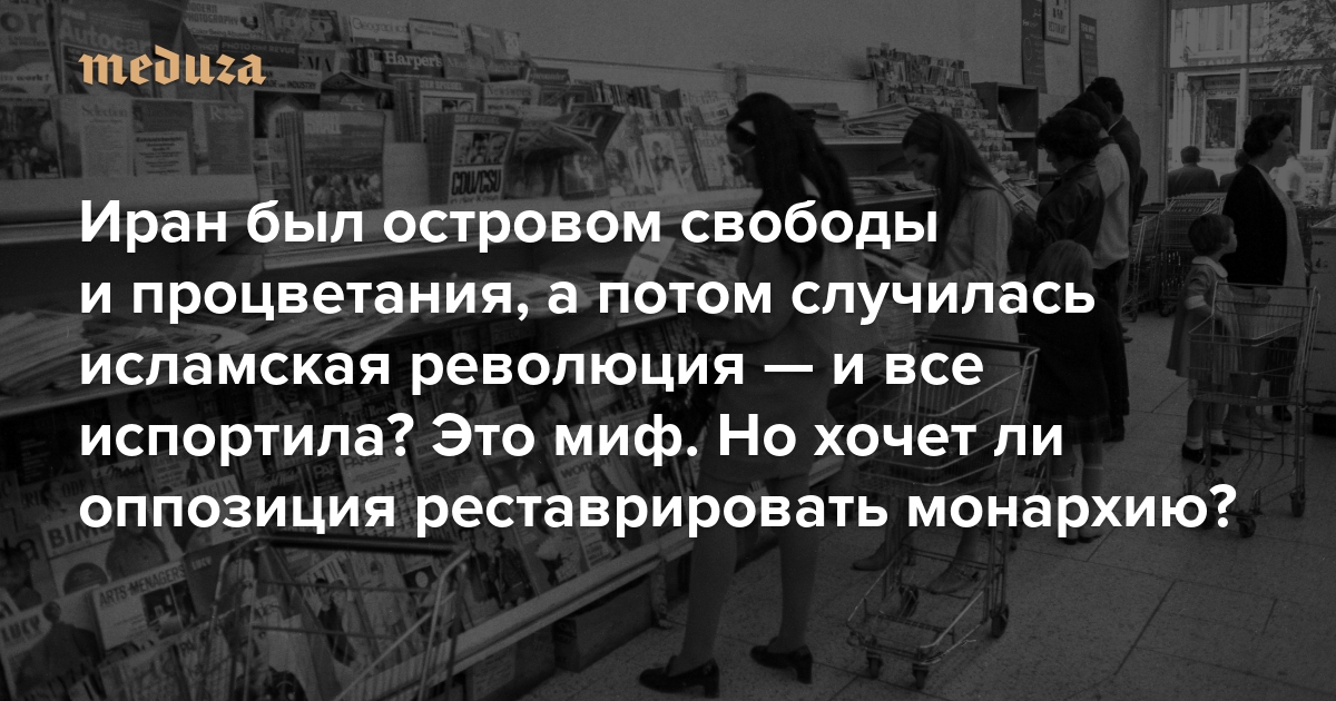 Про Иран накануне исламской революции часто рассуждают как о периоде либерализации и благополучия: страна поддерживала отношения с Западом и СССР, стремительно модернизировалась, а женщины могли носить мини-юбки без оглядки на полицию нравов. Это идеализированное представление о шахском режиме. «Медуза» рассказывает, почему шах Мохаммед Реза Пехлеви не пользовался большой популярностью, как его режим подавлял политическое инакомыслие — и действительно ли иранская оппозиция хочет восстановить монархию.