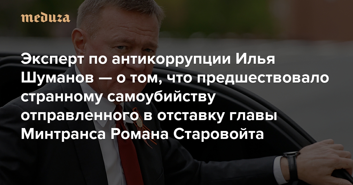 Роман Старовойт был ставленником Ротенбергов, главой приграничной Курской области и министром с большими перспективами Эксперт по антикоррупции Илья Шуманов — о том, что предшествовало странному самоубийству отправленного в отставку главы Минтранса