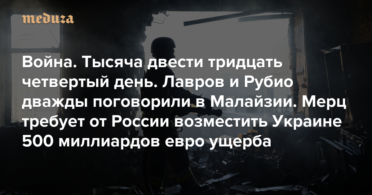 Война Тысяча двести тридцать четвертый день. Лавров и Рубио дважды поговорили в Малайзии. Мерц требует от России возместить Украине 500 миллиардов евро ущерба