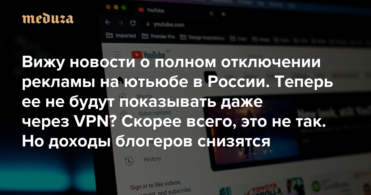 Вижу новости о полном отключении рекламы на ютьюбе в России. Теперь ее не будут показывать даже через VPN? Скорее всего, это не так. Но доходы блогеров снизятся