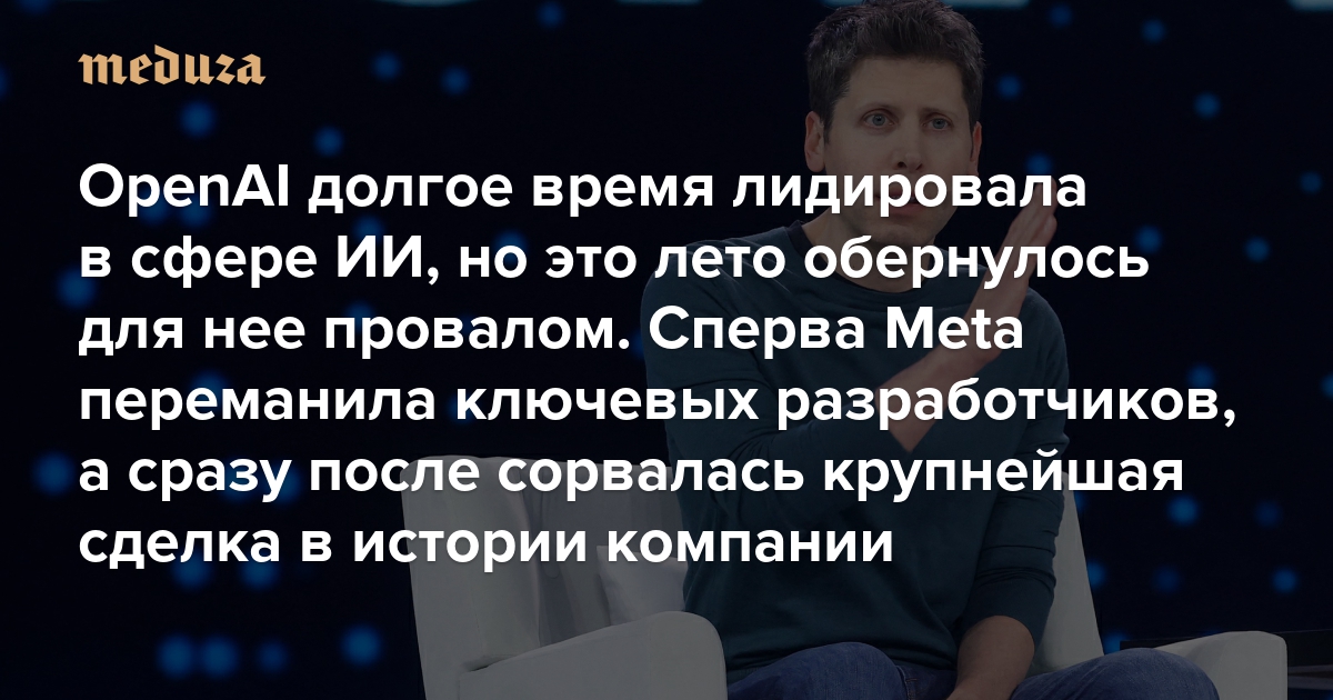 OpenAI долгое время была лидером в сфере ИИ, однако это лето обернулось для нее провалом Сперва Meta переманила ключевых разработчиков, а сразу после сорвалась крупнейшая сделка в истории компании