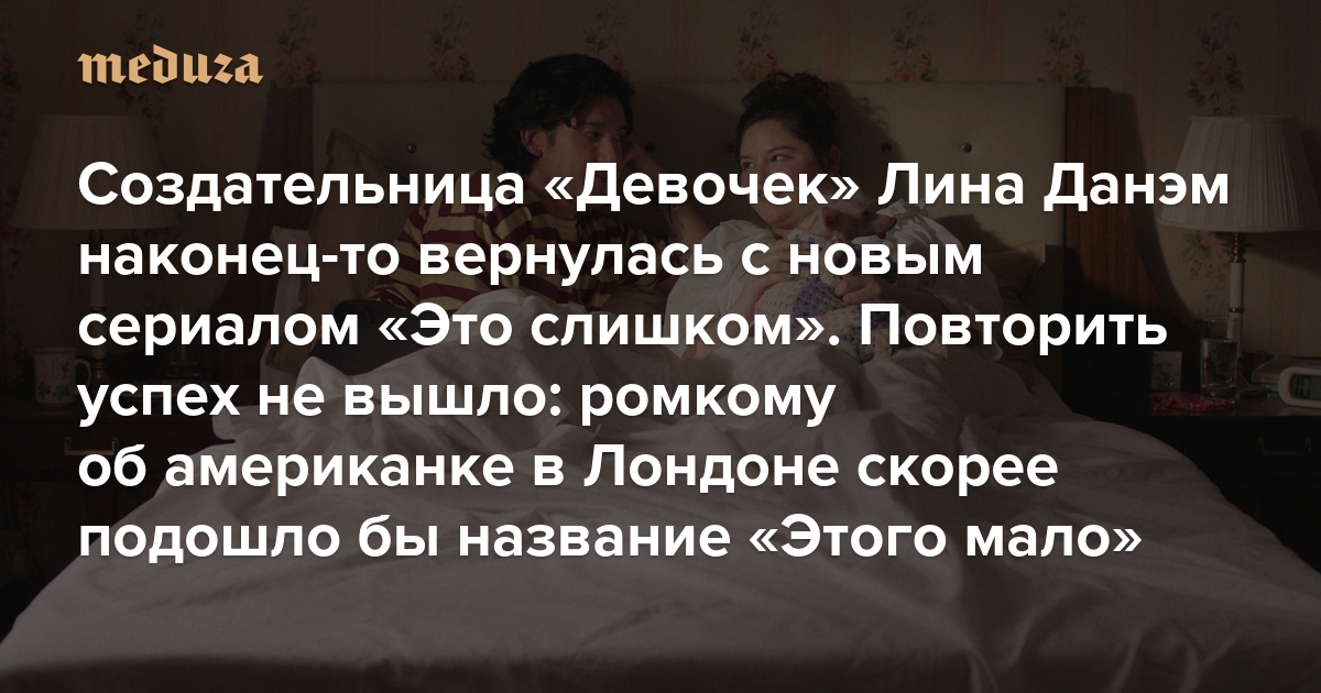 Создательница «Девочек» Лина Данэм наконец-то вернулась с новым сериалом «Это слишком» Повторить успех не вышло: ромкому об американке в Лондоне скорее подошло бы название «Этого мало»