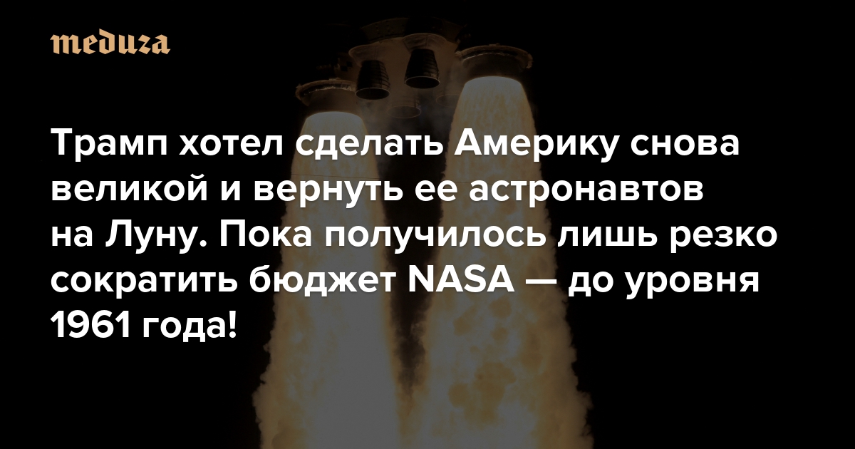 Трамп хотел сделать Америку снова великой и вернуть ее астронавтов на Луну. Пока получилось лишь резко сократить бюджет NASA — до уровня 1961 года! Ждет ли космонавтику США кризис?