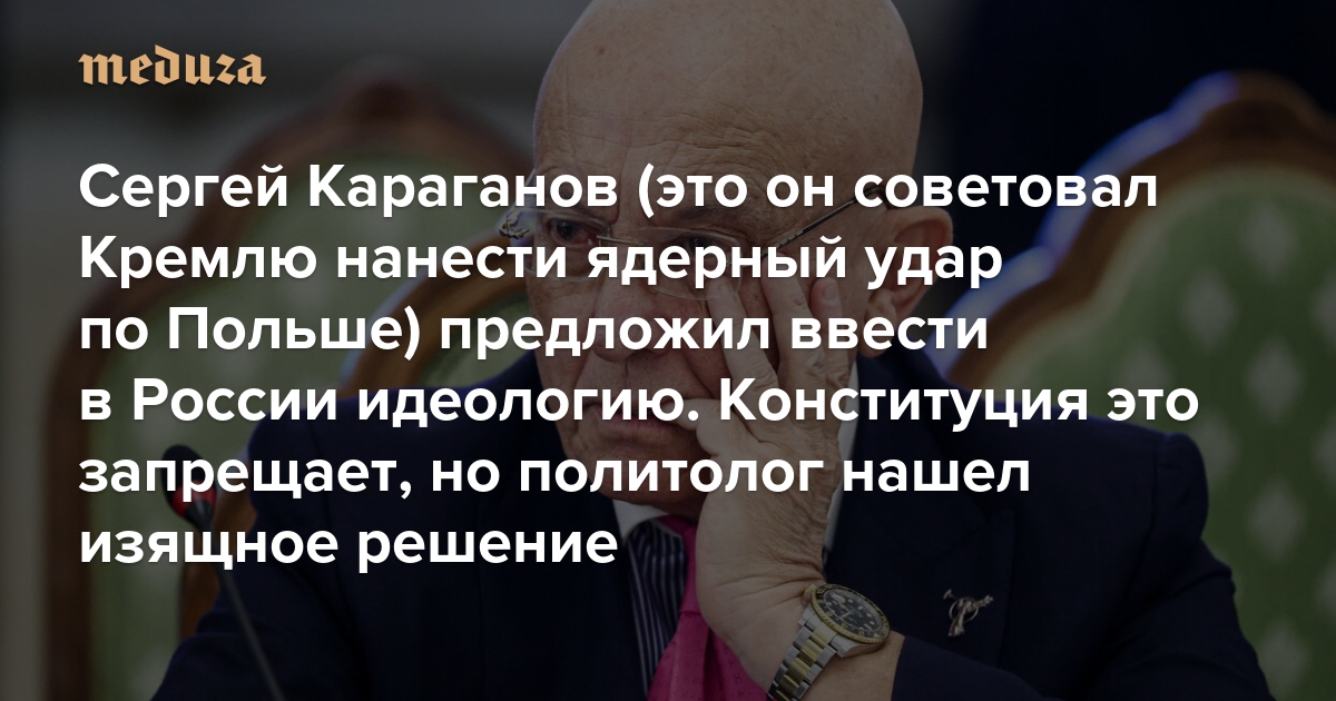 Мощный лидер для народа-богоносца Сергей Караганов (это он советовал Кремлю нанести ядерный удар по Польше) предложил ввести в России идеологию. Конституция это запрещает, но политолог нашел изящное решение