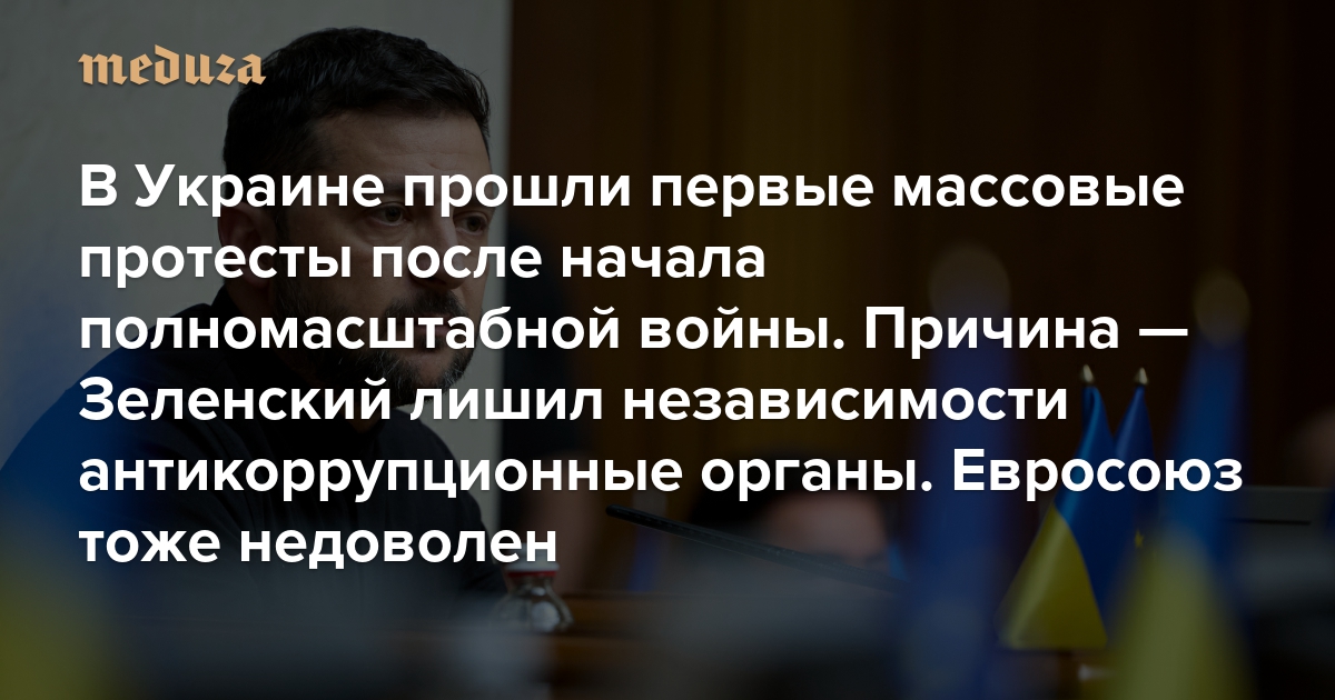 В Украине первые массовые протесты после начала полномасштабной войны. Причина — Зеленский лишил независимости антикоррупционные органы Евросоюз тоже недоволен. Борьба с коррупцией — это условие вступления Украины в ЕС