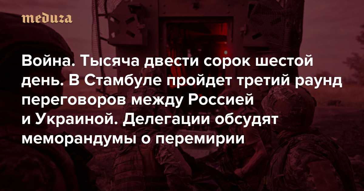 Война Тысяча двести сорок шестой день. В Стамбуле пройдет третий раунд переговоров между Россией и Украиной. Делегации обсудят меморандумы о перемирии